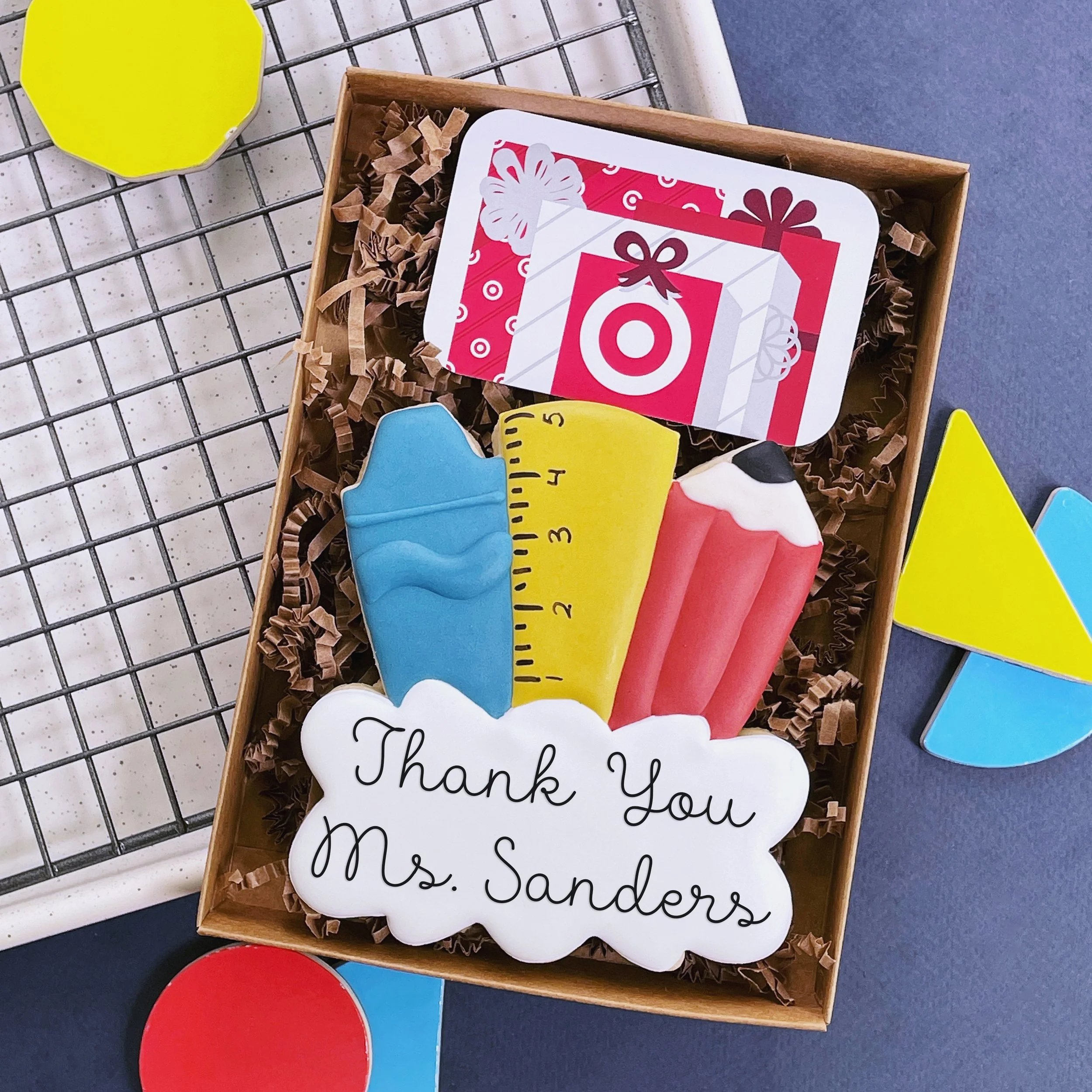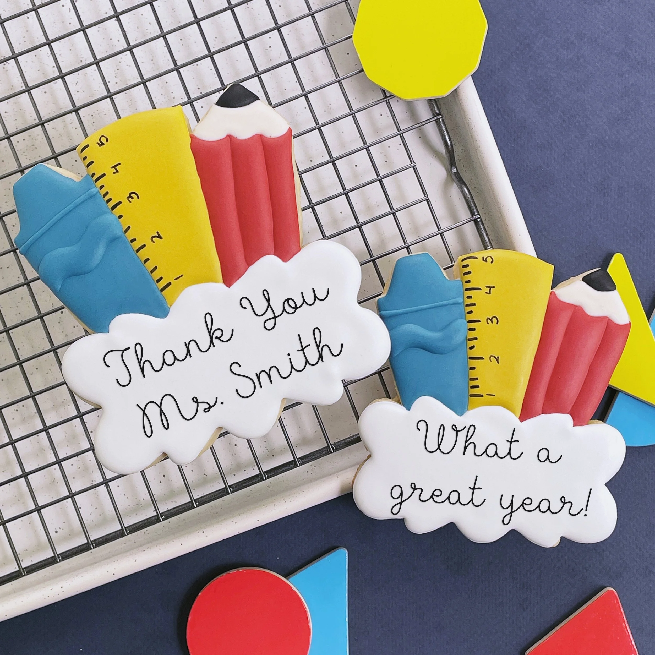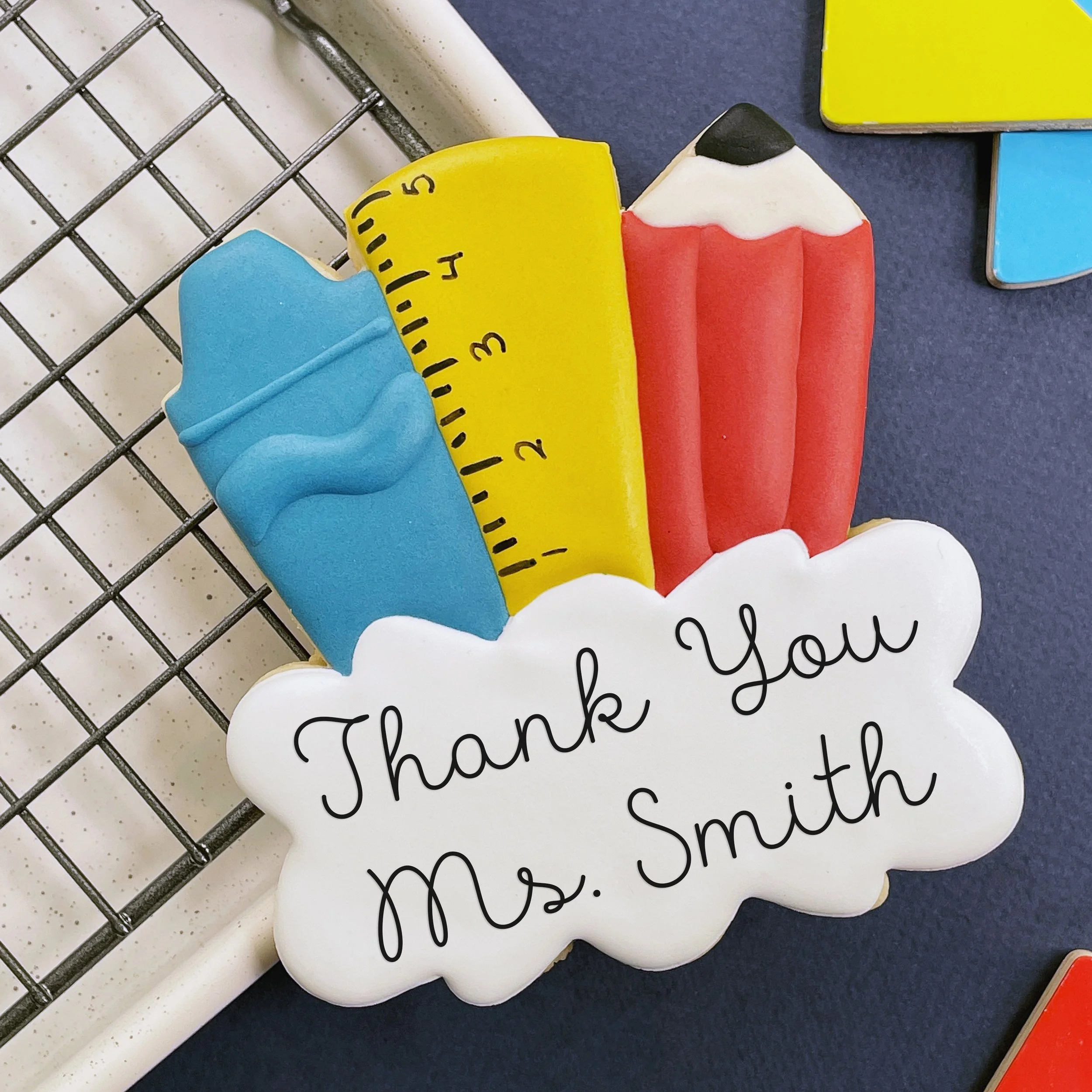 Thank teachers and staff with a custom message. One extra large vanilla bean cookie. Please enter your own text at checkout. These are some ideas but you can make it fully custom!