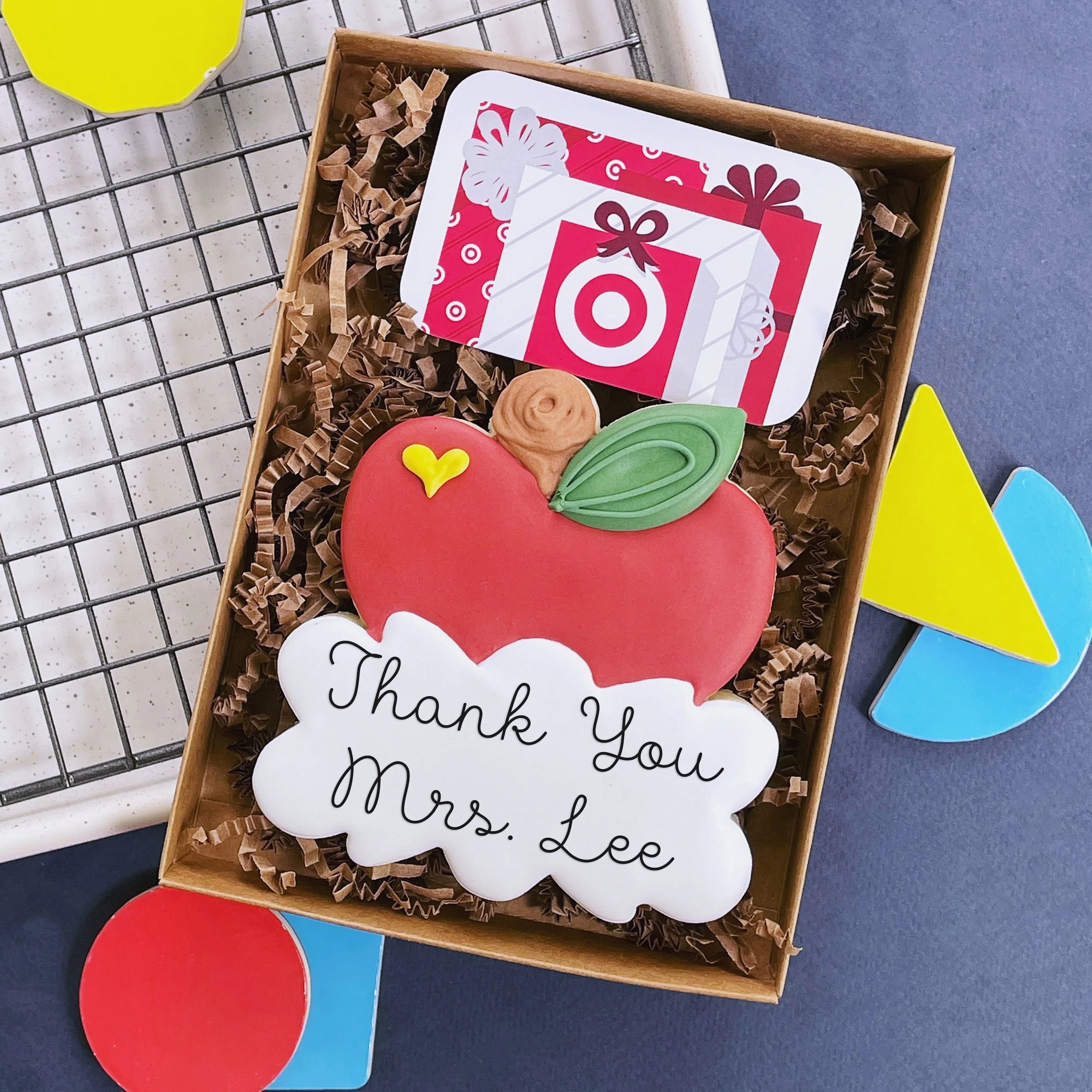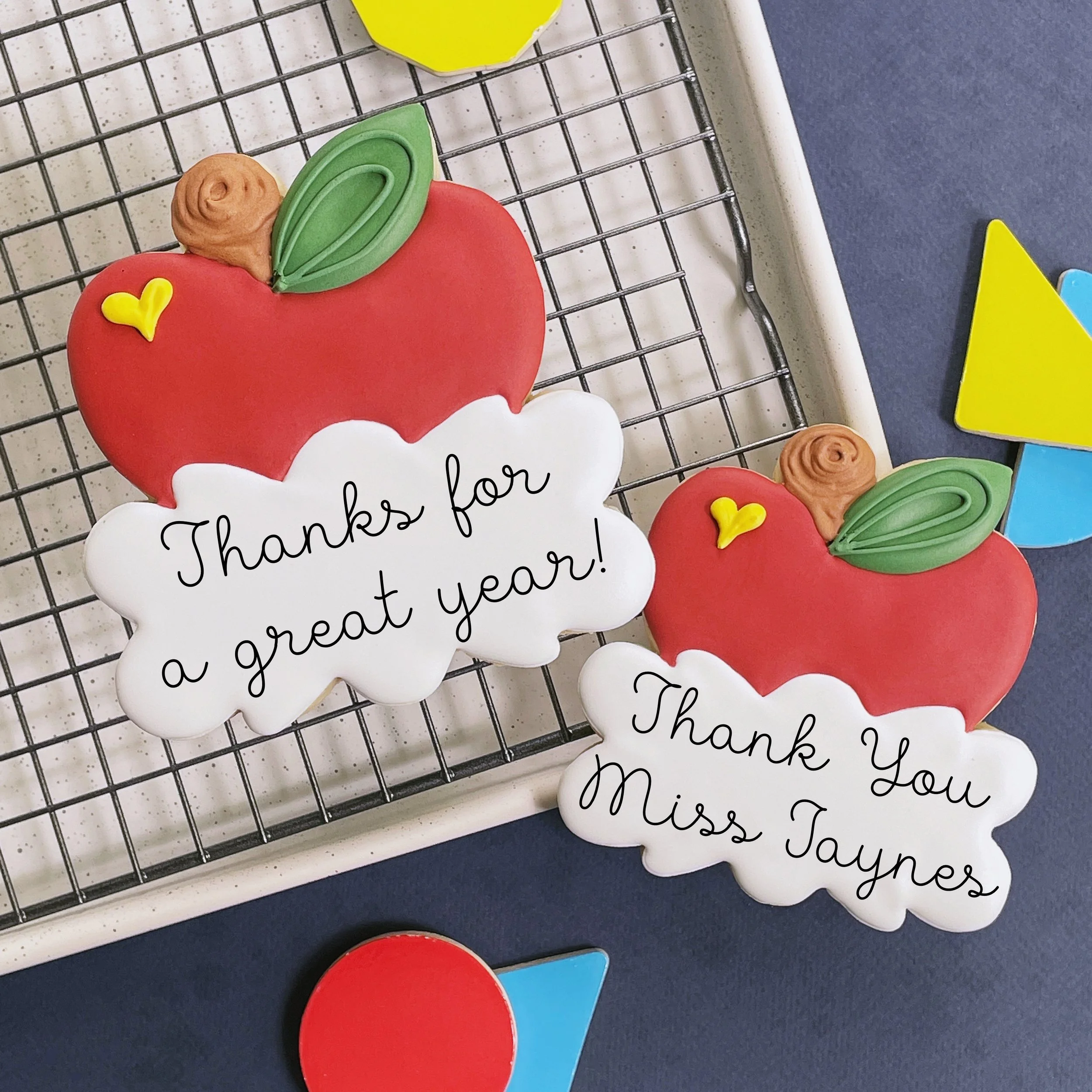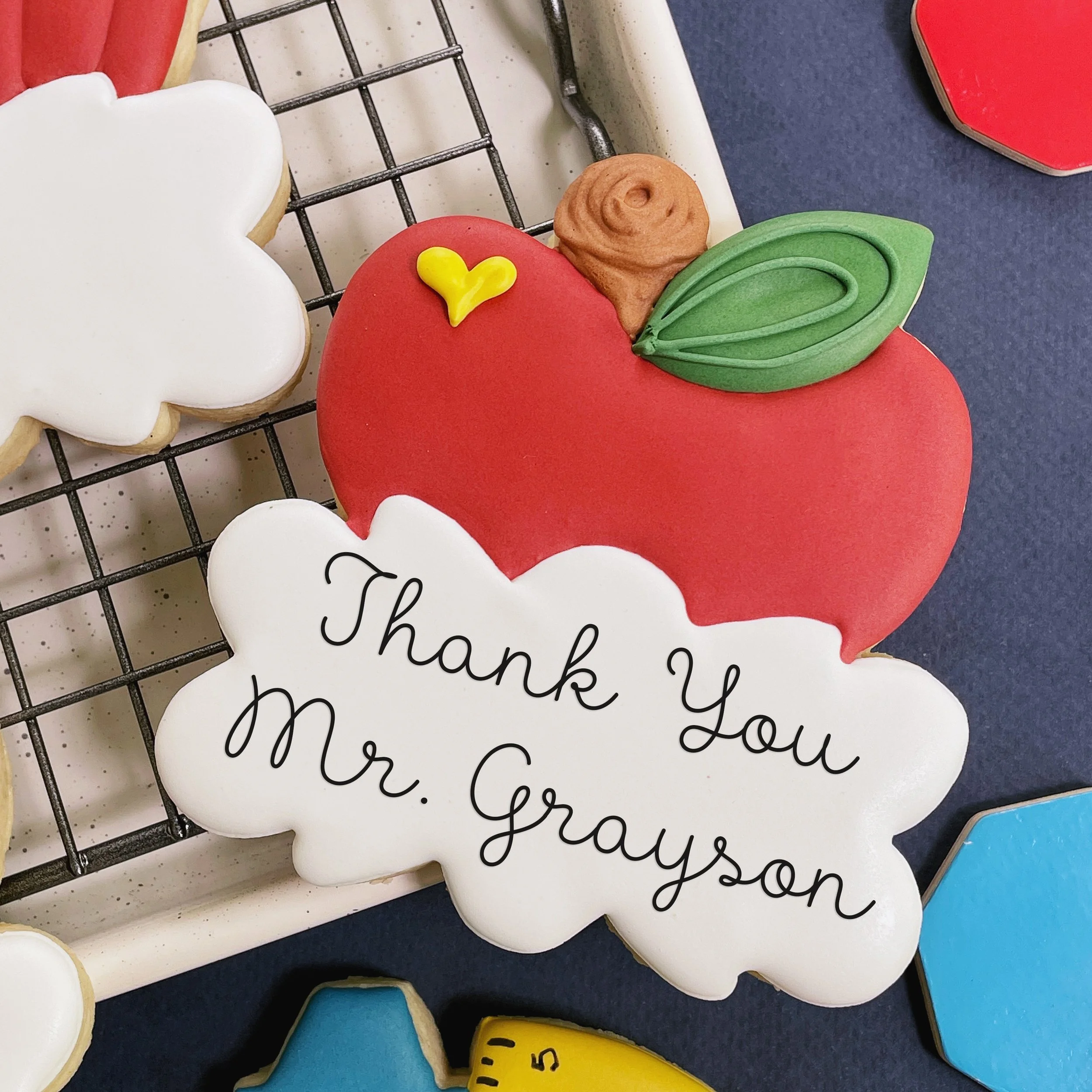 Thank teachers and staff with a custom message. One extra large vanilla bean cookie. Please enter your own text at checkout. These are some ideas but you can make it fully custom!