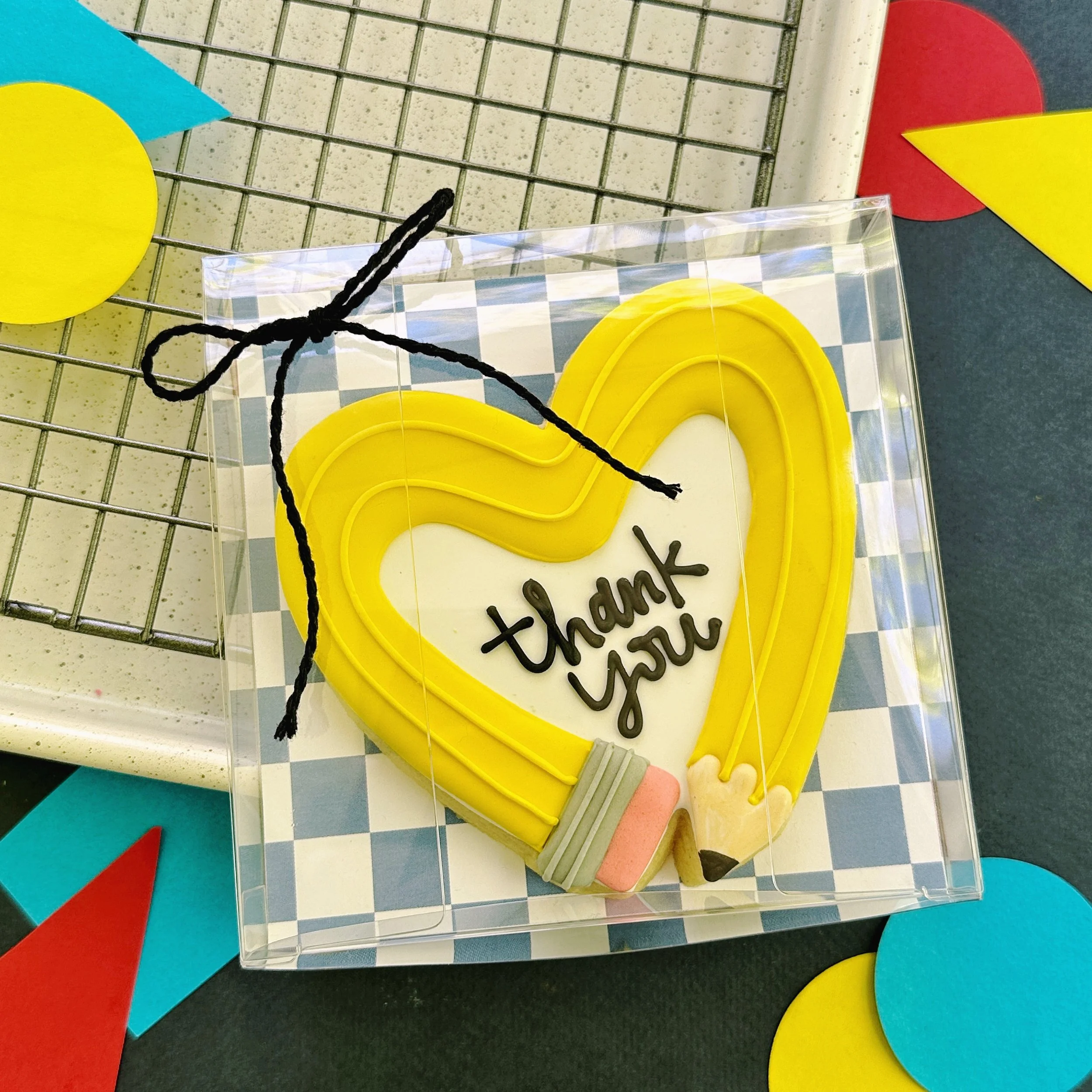 One extra large vanilla bean cookie with “Thank You”. Choose your color and packaging.
